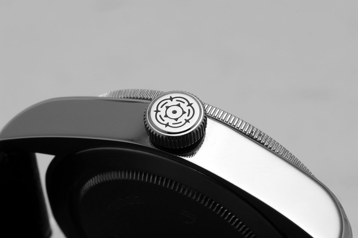 A screw-down crown that is very easy to unlock and adjust the watch. The watch is rated for 200 meters which it surely pass with a wide margin considering the construction.