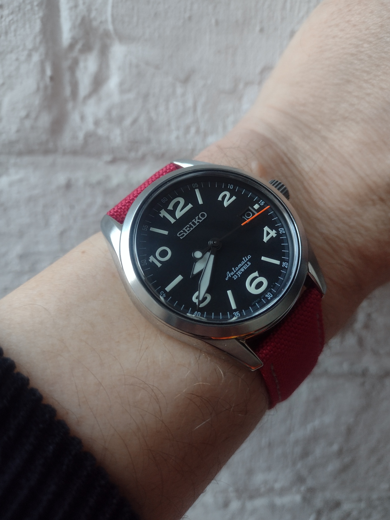 From the same era as the Urushi, so similar foibles (?) quite large n a bit chunky. The matt dial works well as does colour matched date wheel.