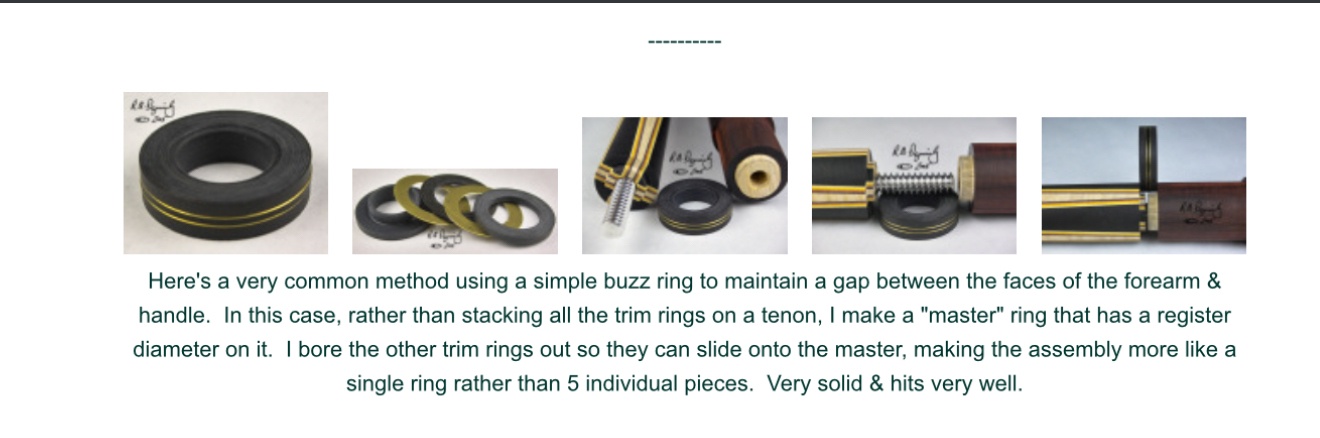 The original idea George came up with is to remove direct contact of the forearm and the handle. Impact energy propagates through the buzz ring instead of through solid wood. The cue gets a bit of a hint of a rubbery feel as it literally bounces off the cueball. It is not a dead feel that you could get from soft material used to cushion the impact like soft leather tips.
