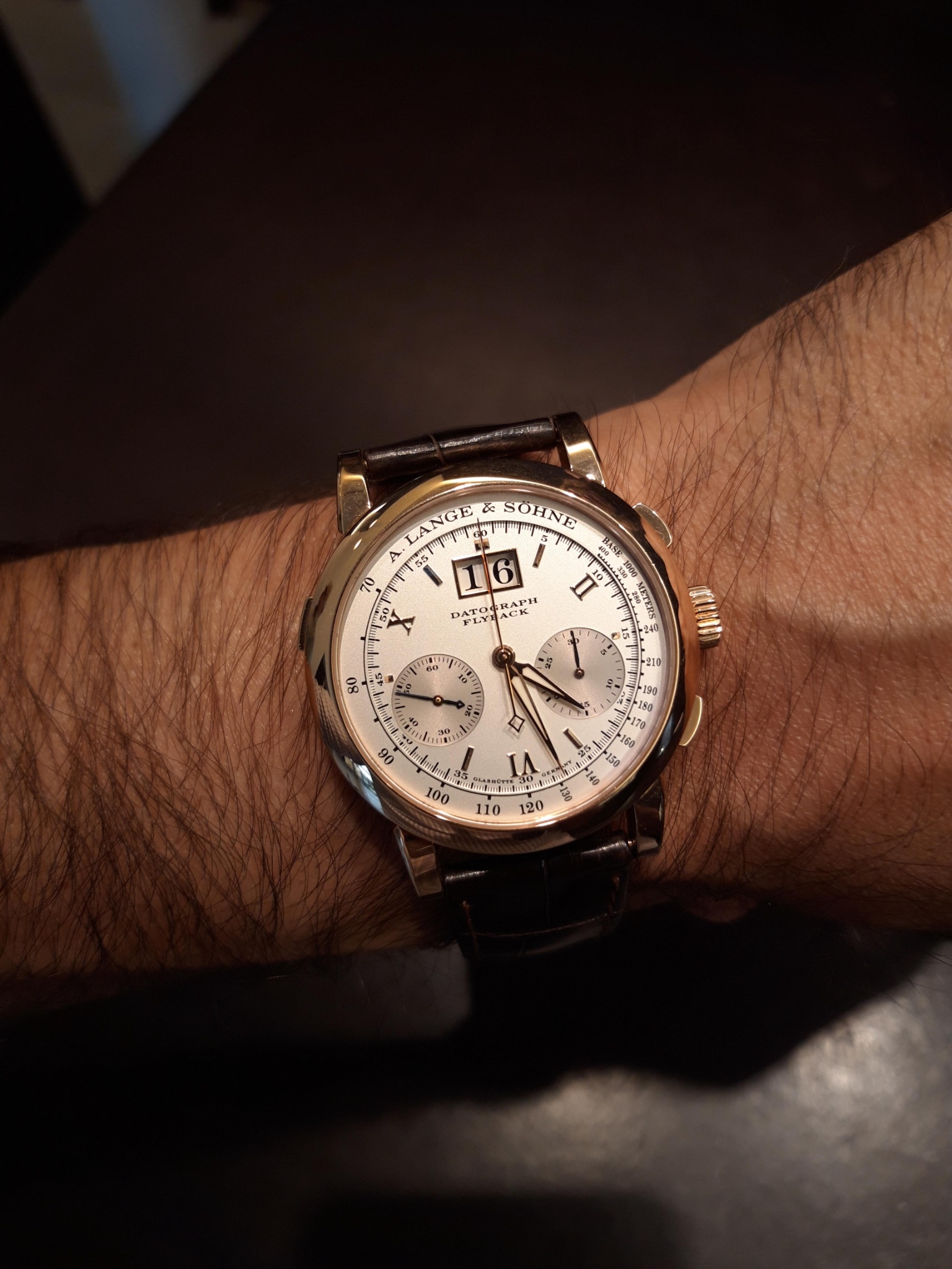 However, on the dial side, I personally don't like the lumed hands of the Datograph (why such a sporty touch on such a wonderful dress timepiece?) and, because simpler is better for me, I prefer the look of your Lange 1.