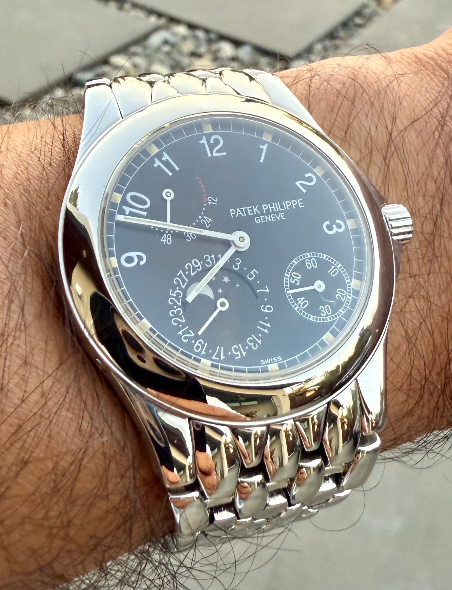 Over the moon to get this reference that checks a lot of boxes for me: bead rice bracelet is butter; 240 micro rotor: PR; monochromatic moon phase; Geneva seal and the watch is 25 years old - what better way to celebrate my Silver wedding anniversary!