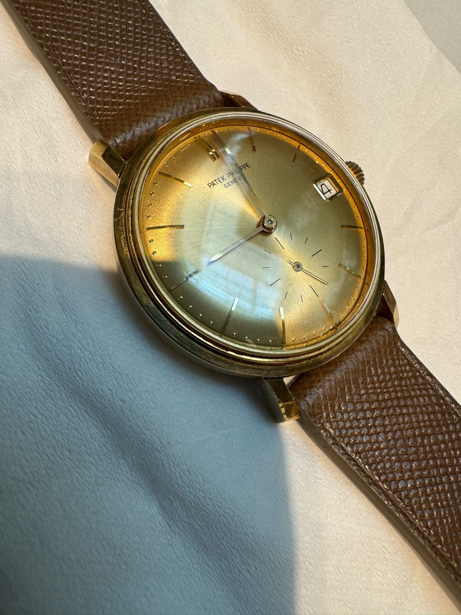 This is a 3445g. It’s the first vintage model I've ever owned, and I was able to get it cheaply because this reference was sold in large quantities in Japan. This particular watch has been converted to a trans-back at the previous owner's request. The dial has been redone, but is in very good condition. This would be a great model for everyday use. With a thin strap, it fits snugly on the wrist.
