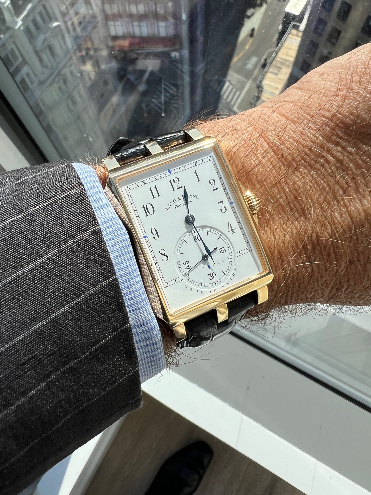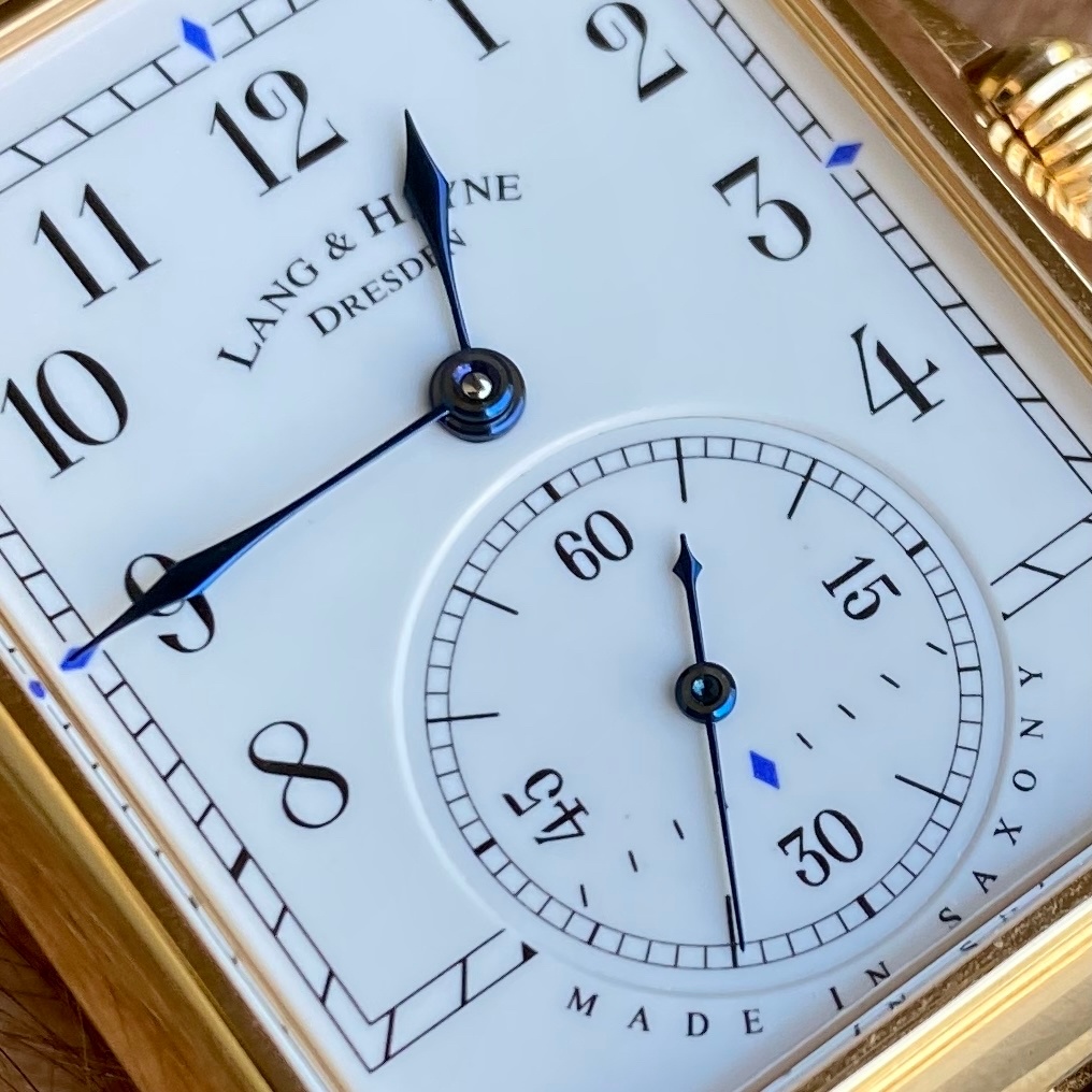 The white two-layed ‘Grand feu’ enamel dial with a recessed sub-seconds dial is also superbly executed. Overall, I was quite impressed by this “under the radar” German manufacturer!🥂