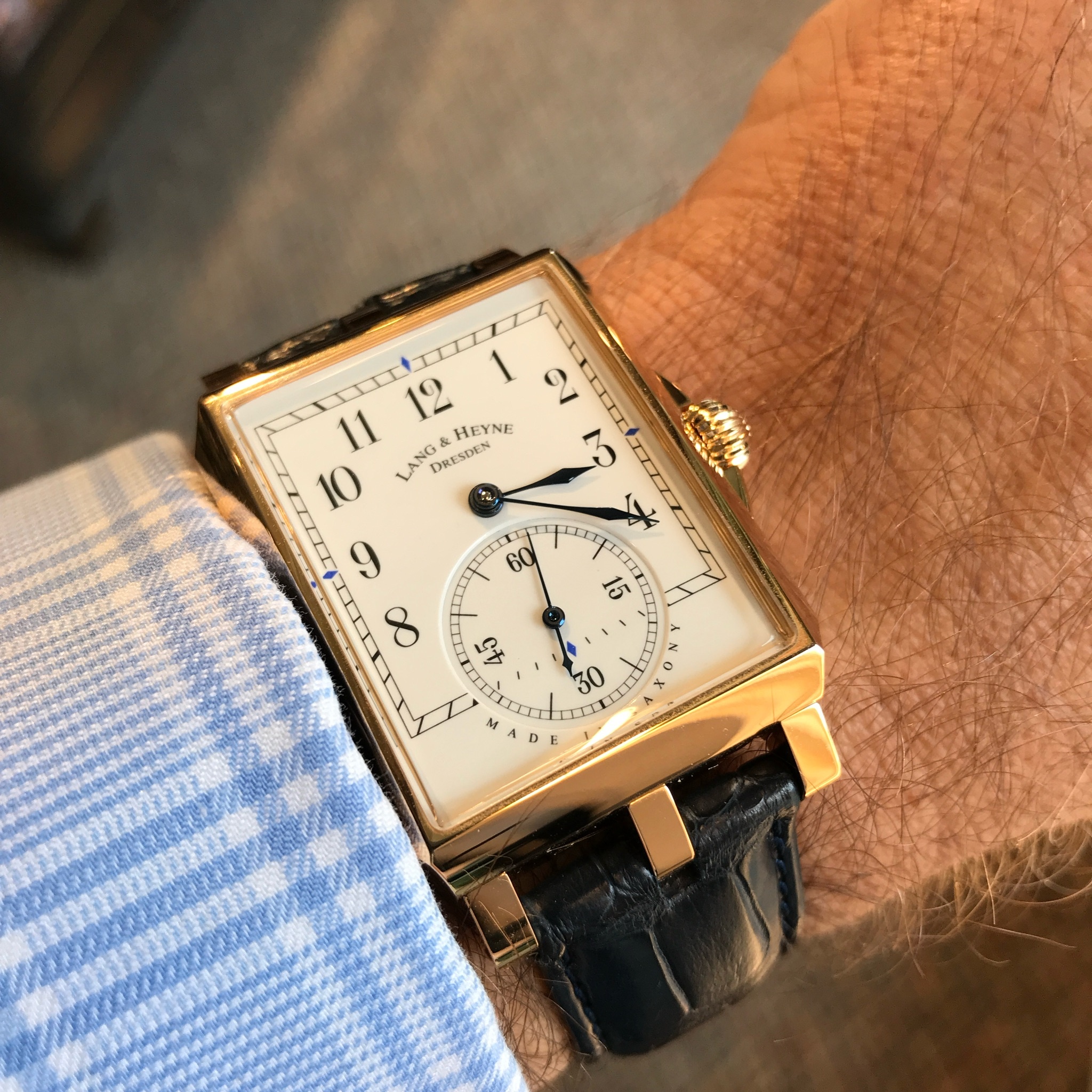 Although the brand initial offerings took inspiration from pocket watches, this was their first attempt at a rectangular piece: