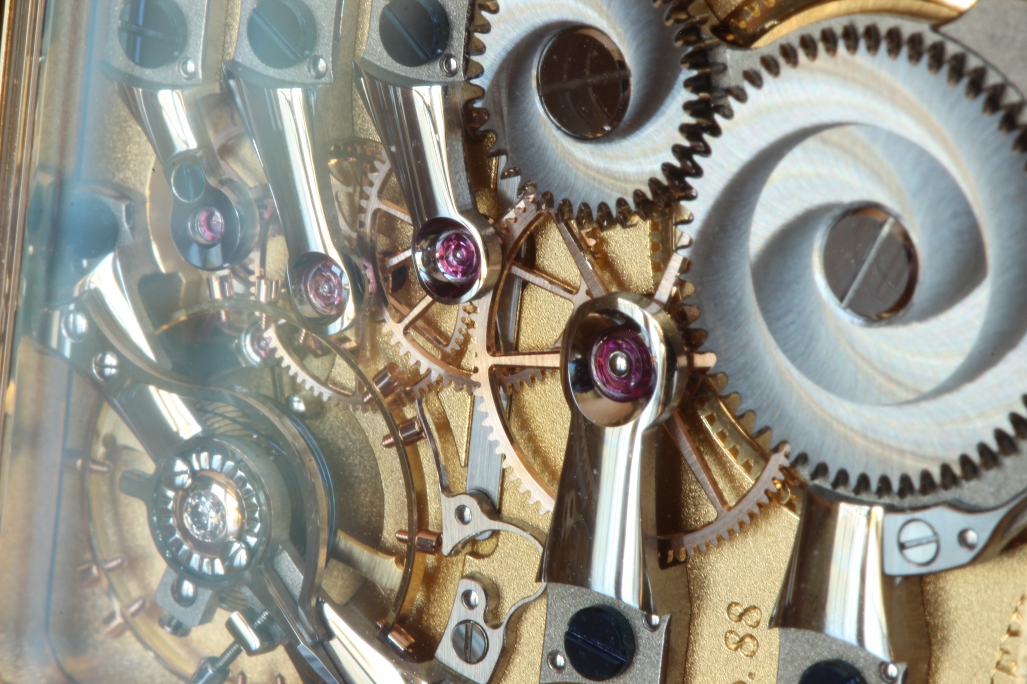 Looking at the engine room, we see the stunningly and superbly executed in-house Calibre VIII, manual wound movement: