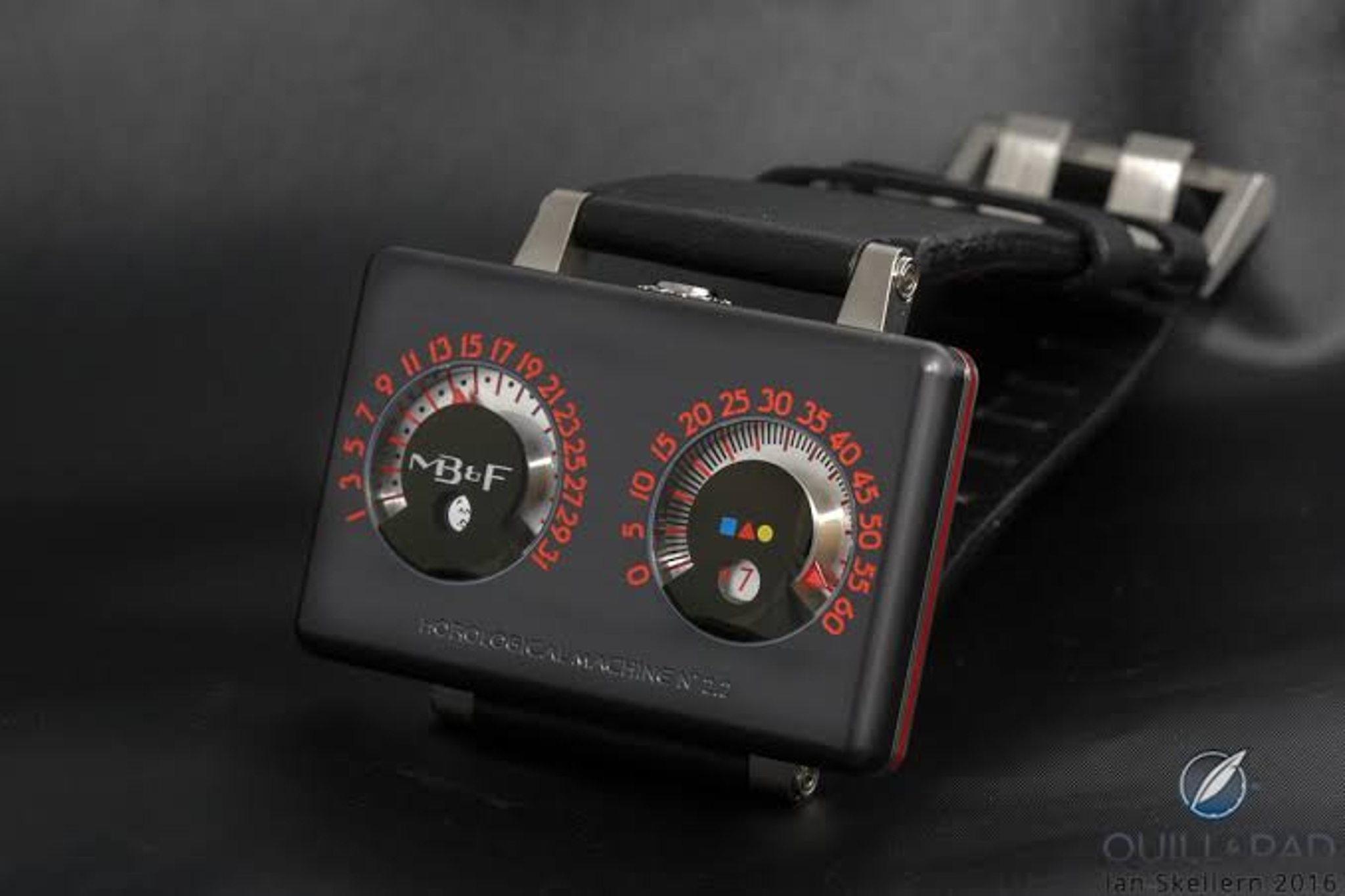 MB&F official webpageThree-dimensional horological engine, composed of a jumping hour and trailing minutes module developed in-house by MB&F, powered by a Sellita gear train