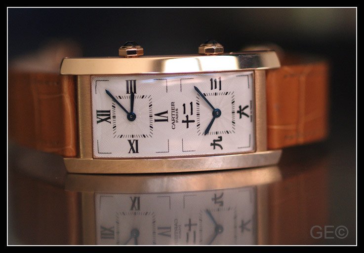 he travels alot and therefore wants a dual time watch, on two seperate dials or sub dial.