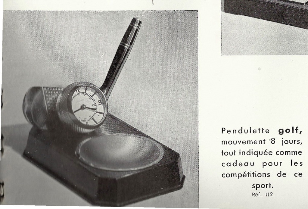 - A " Golfer " Clock, housing an 8 Days movement, too, from the Fifties.Ref 409, 23 cm High and 17 cm large: