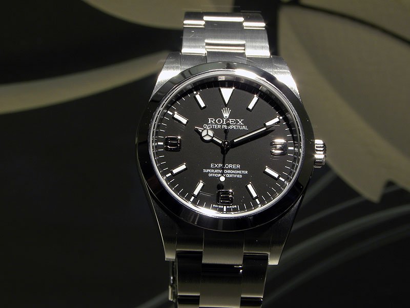 The 39 mm Explorer with the matte dial and blacked out numbers.