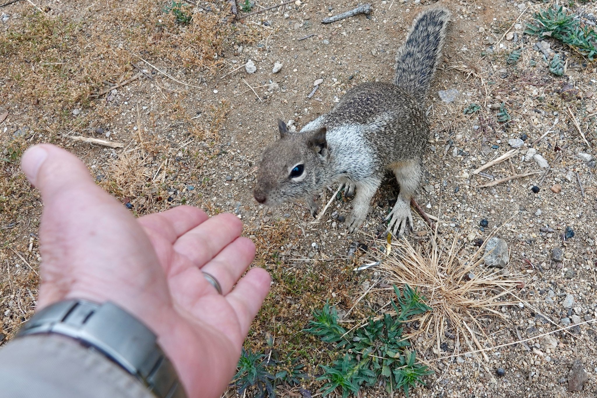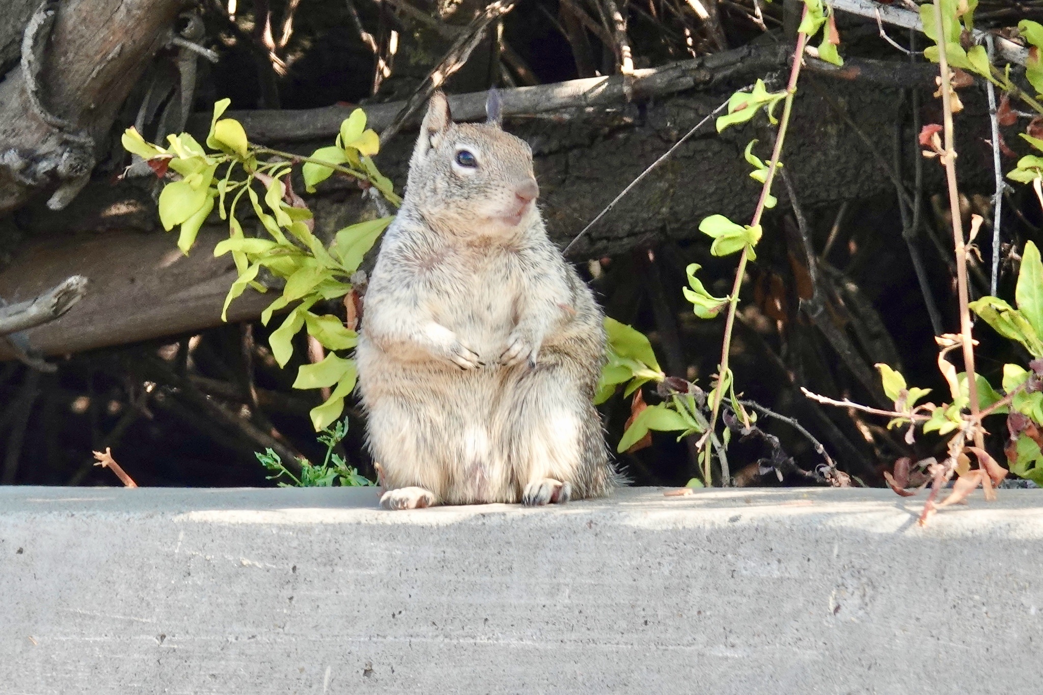The ground squirrel climbed to the top of a bush; apparently as amused as I was.