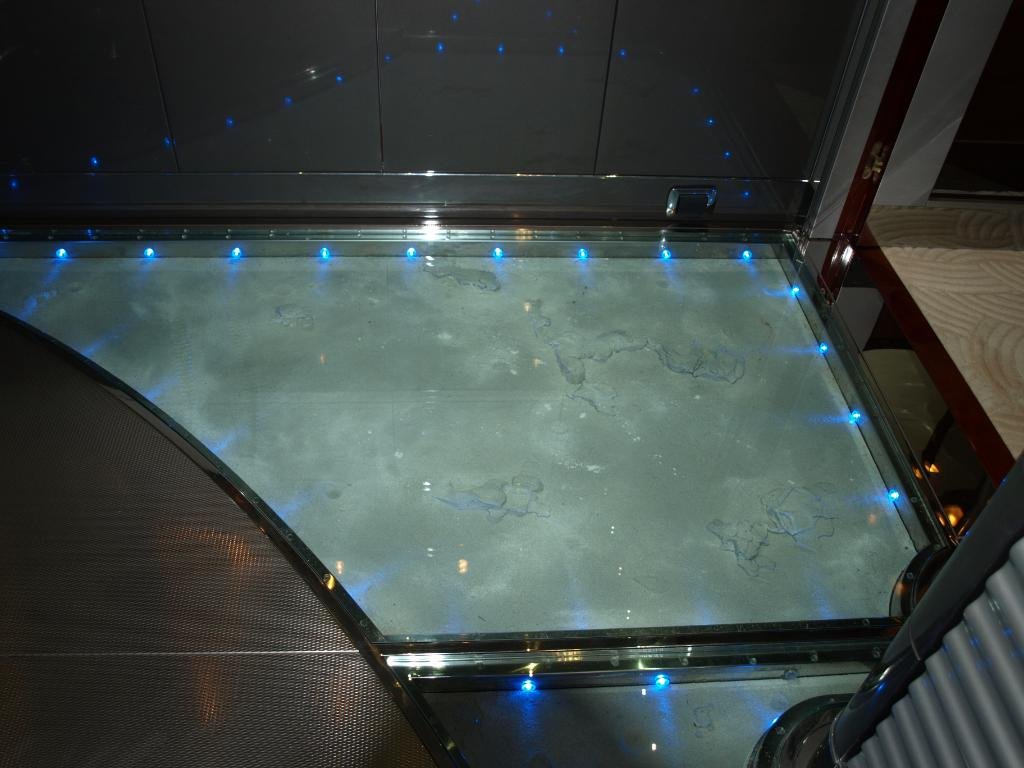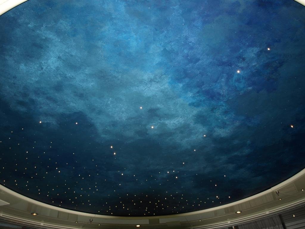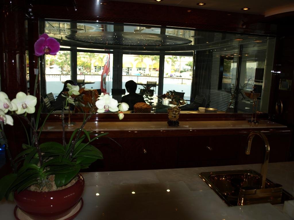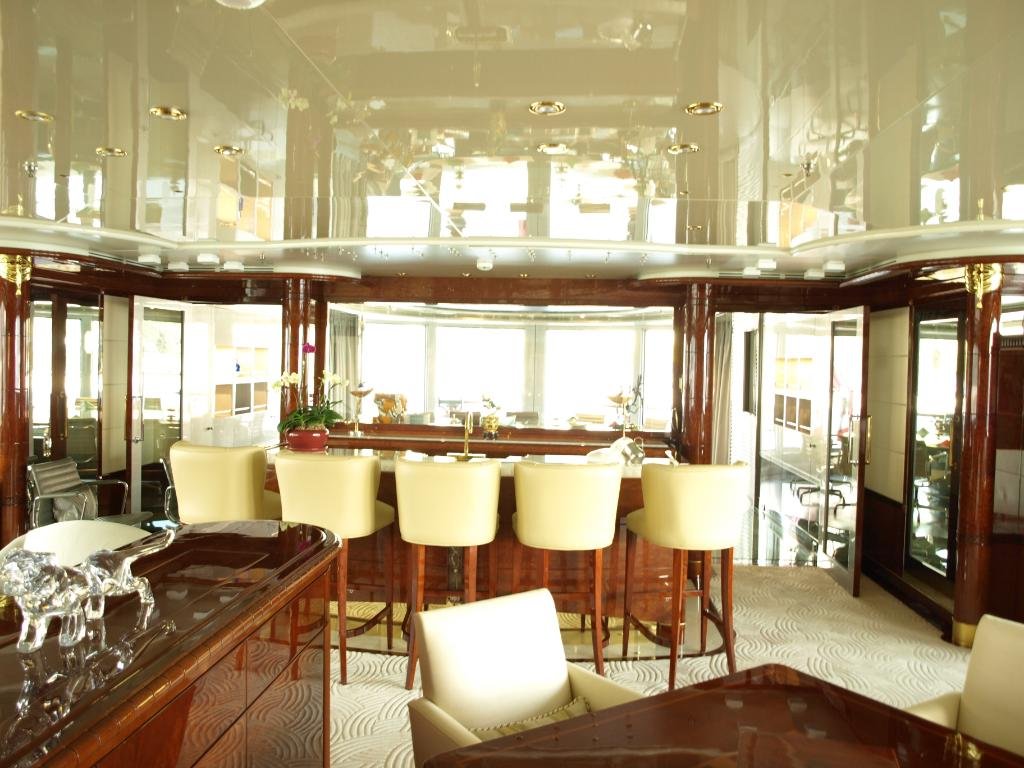 The ceiling is studded with planetarium-style fibre optics. Connected to the yacht's GPS, the stars and constellations revolve to reflect the true heading and depict the night skies of northern and southern hemispheres.