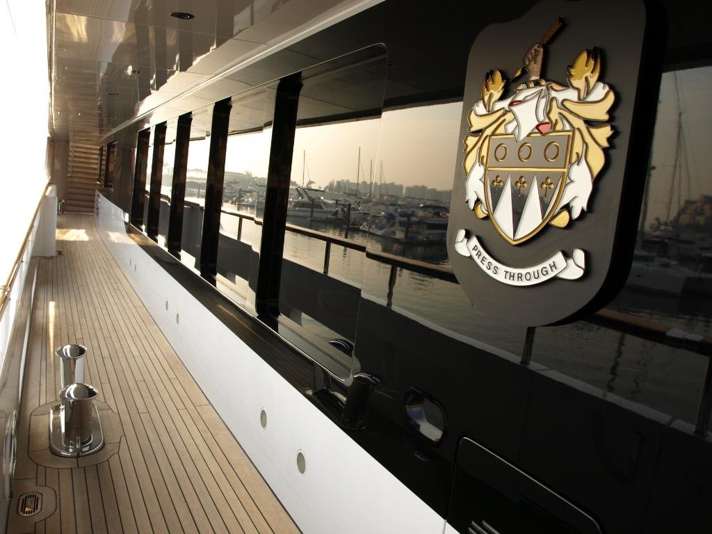Owner's personal coat of arms on side of the boat