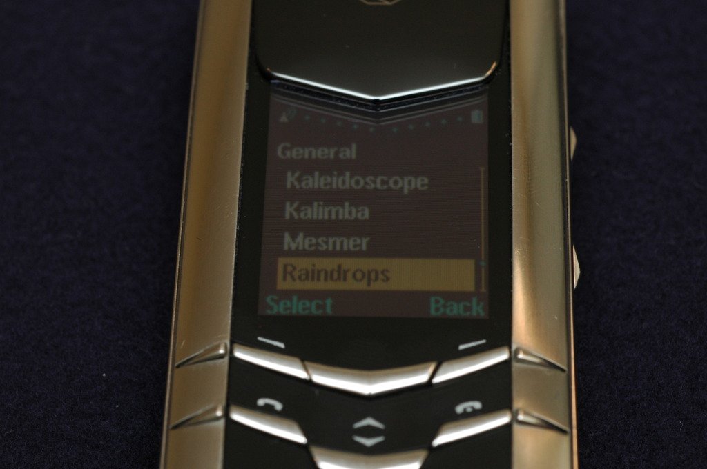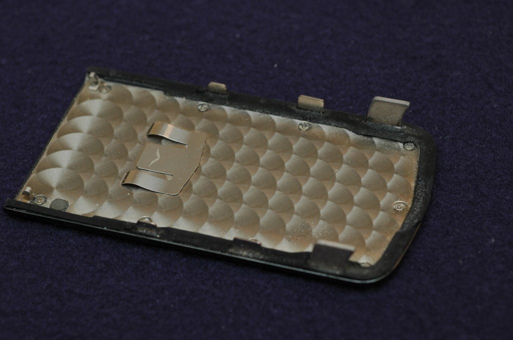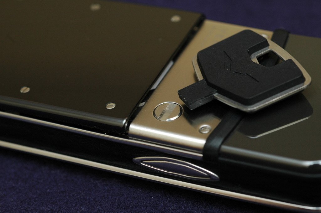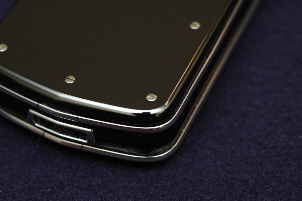 The back plate of the Vertu Signature uses a scratch-resistant fusion of zirconia ceramic and titanium, which is partly translucent to emulates the luster of lacquered wood. I must say it looks quite nice and very reflective.