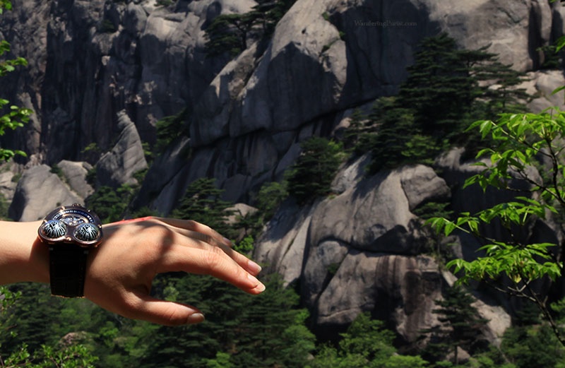 ChocoFrog paying respects to the Granite Scholar, meditating eternally in Huang Shan