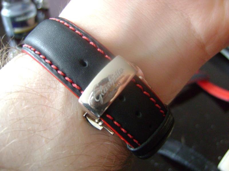 I did order a nice black leather strap with red stitching which hopefully will look even better but having said that I very happy with this one. I will reiterate an all black strap just doesn't work on this watch.