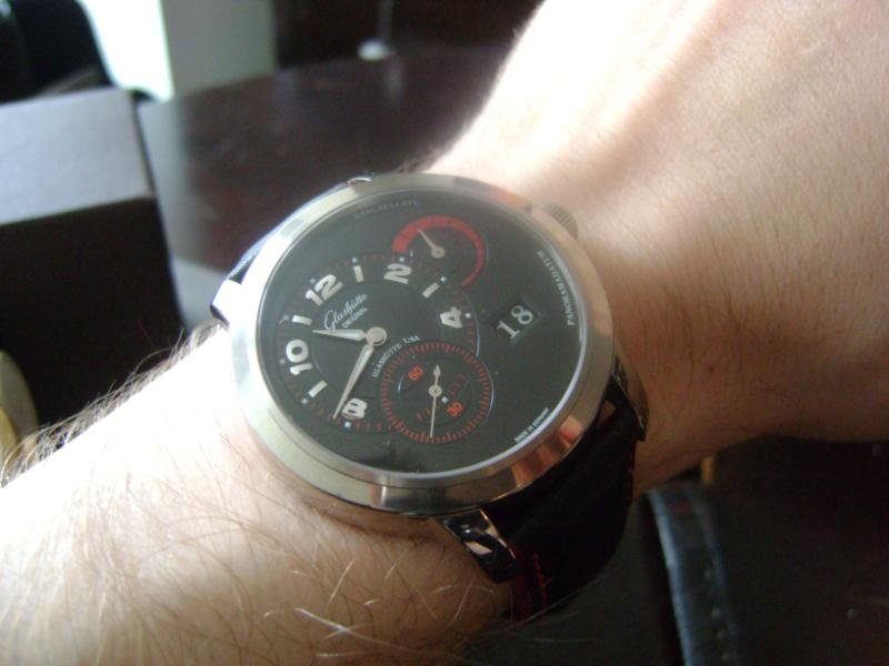 I think the red accents really make this watch. The red pops right off the dial as its a great contrast against the black. I only wish it came with an anti reflective coating on the crystal and a leather vs nylon strap. Other than that its a great look watch. BTW, I'm still enjoying the Langematik!