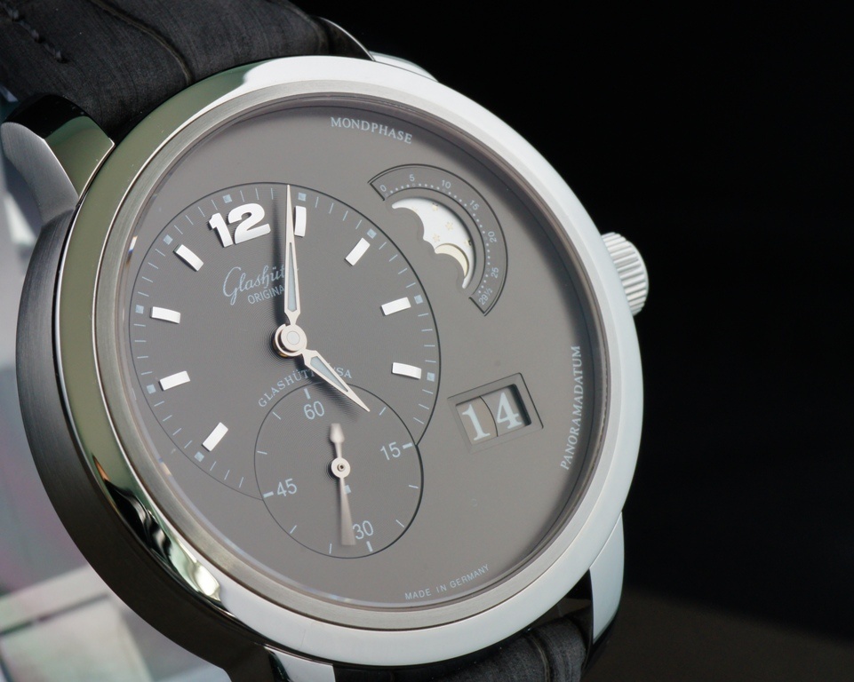 I was undecided between the new and old versions of the PanoMaticLunar - I felt that with the old version, the silver dial was quite formal, whereas the grey dial XL was a kind of sports/dressy hybrid. The newer version, with the thinner bezel looks a lot more delicate and therefore dressier all round. I like the new dial layout, particularly the thinner indices, but I think I still prefer the thicker bezel of the outgoing version. Long story, short, I went for an XL (partly inpired by Axelzon's pics).