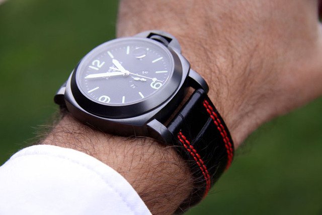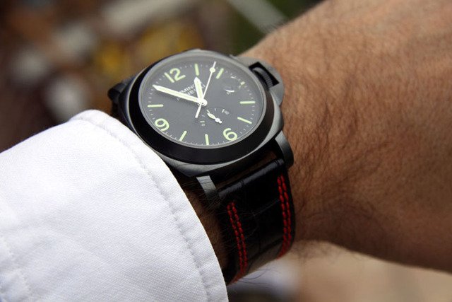 A new strap was prepared for the new member of the PAMily: an ABP in matt coco with double red sewn. This strap has created some controversy here in the Spanish fora...some love it, some hate it. I was a bit doubtful at the start of the day, but now I feel sure that it lightens up the watch. The black OEM strap, on a black case with a black dial...too boring for me. The red touch makes it more lively and sportive and it grows on you by the minute.