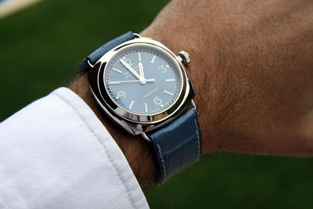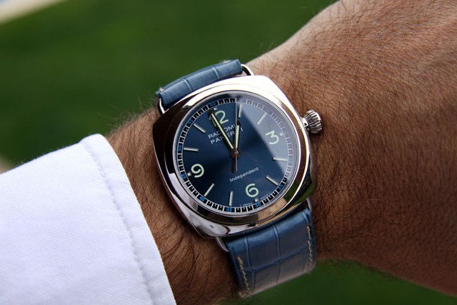 The PAM 80 Radiomir Independent is a limited edition of 2000 or 2001, I am not sure. It is a 42mm Radiomir which contains a dead-second movement by Chézard, built in the 50s (1950's, that is ;-)) Only 160 made. Beautiful blue dial and see-through back with a little augmentation lense so you may appreciate better the independent-second complication.