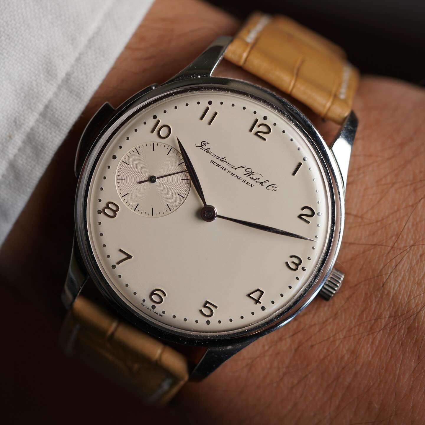 I preferred the stainless steel Aqua dial variant (ref. IW328903): the color really deserves to be seen in real life (much better than on photos) and the whole piece felt much more pleasing to my eyes, even if the fit is, of course, identical.