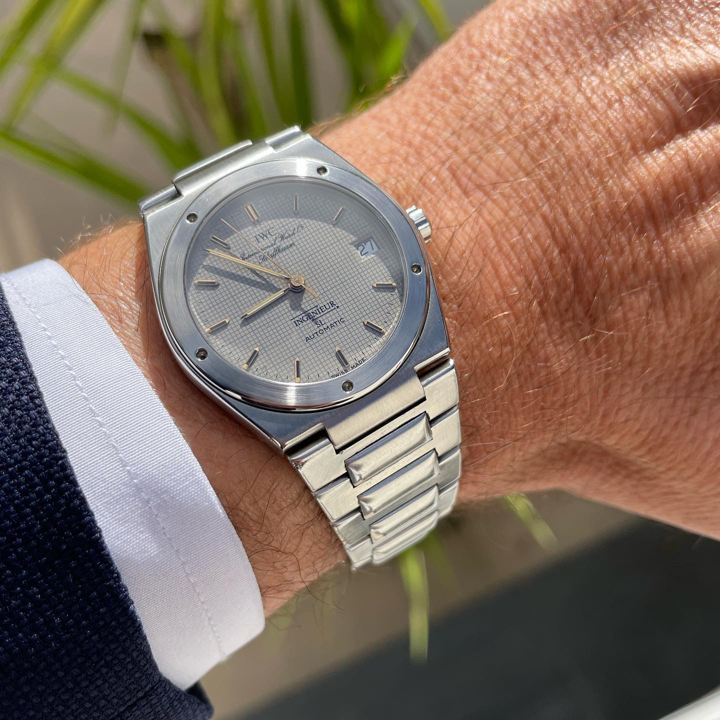 I first tried on the titanium Ingenieur Automatic 40 (ref. IW328904) and was disappointed: I didn't respond to the look of the metal nor to the blackened hands and indexes.