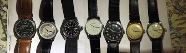 Rolex on right acquired in 1971 Favre Leuba next to it. Acquired in 1969 HMT next to it was military watch at time of Indo China war IWC next to it has movement from the late 1940s or early 1950s Not sure of exact vintage of below two, (Hamilton & Roskopk) but probably pre 1930-50s