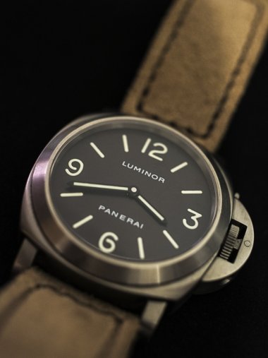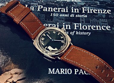 47mm 1950 case (the definitive Panerai case/size), Militare dial (the association with its roots), Angelus SF240 (the next most original movement after the Rolex/Cortebert 618). What more can I ask for? ;)