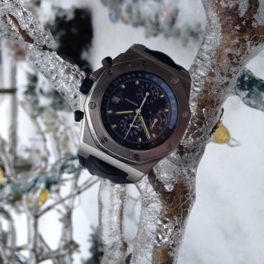 Just put this black horn back on my watch. The strap change requires the patience of a Monk. I finally figured out to put one of the screws back in to stop the bar from shooting out the other end while trying to get it between the lugs just right. After all that, I think I like the original rubber s