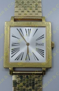 Vintage yellow gold Piaget Altiplano, square case, quartz movement, on yellow gold bracelet, no box or papers. It has superficial scratches due to normal wear and age. The overall condition is good. We are located in the US and will ship world wide. Please feel free to contact us if you have any que