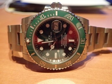 depending on the lighting conditions and angle of the watch. the green dial can actually look like a black dial. a bit of a "chameleon" to be honest. A few others thought it was a black dial from a distance till they came up close and had a look to realise it was green. here are a few quick shots, d