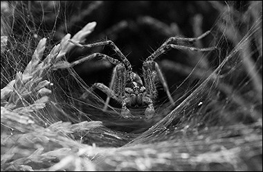 Using the Canon FDn 80-200L/4 I can get to about .7m, but this is closer to 1m away, and the spider isn't very large (1-1.5cm). I liked the web she had set up as it offered a nice lead in and natural framing, and her pose was just great and "inviting". The full size picture has this section for less
