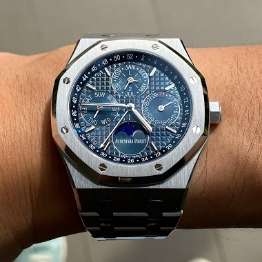 Not many QP’s from other brands come close to how well AP does it. This QP in my humble opinion ticks all the boxes for me - from the dial finishing, the aventurine moonphase, the photo-accurate moon , week indicator function, choice of hands and modern bracelet and clasp and case size. I’m so in lo