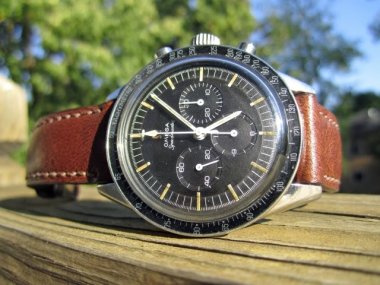 Simply the nicest Pie Pan on the market. Ref. 167.005. Original, un-refinished dial shows no patina. Unpolished lugs. Original crown. 20mm Cal. 551 movement was serviced in late 2009, and dates the watch to 1963. Omega BOR bracelet included, along with a new croc grain black leather strap (no buckle