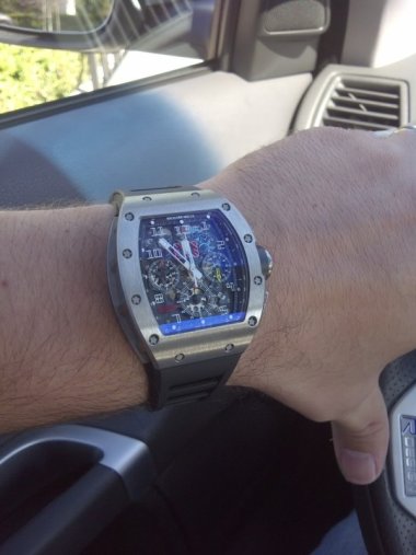 just installed the red rubber strap, i think it looks great. but will have to send it in to rm, power reserve is close to non after i take it off. worn it for 2 days straight (plus i wind it) and when it took it off it stopped two hours later. winding fells weird too. have to wind it for like a minu