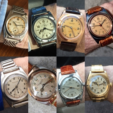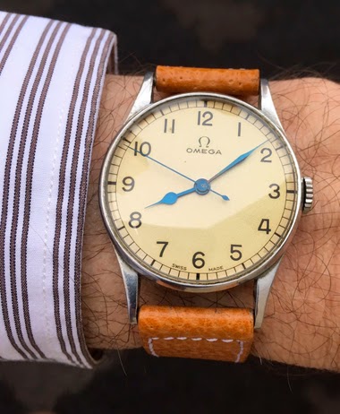 One commissioned to the Hydrographic Survey (H.S. 8) of the British forces, ca. 1943. It's a similar watch to those used by RAF airmen, with an aluminum alloy case (steel case back) and fixed wire lugs.