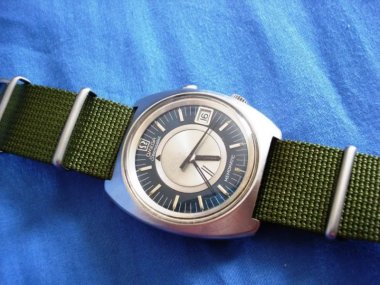 ...just bought it a little while ago with original bracelet and end-pieces. Unfortunately it hasn't grew on me ever since :-( BTW the watch can be set to a certain hour and minute so the thin disc represents the 'hour hand' while the bigger inner disc is the 'minute hand' of the alarm mechanism. The