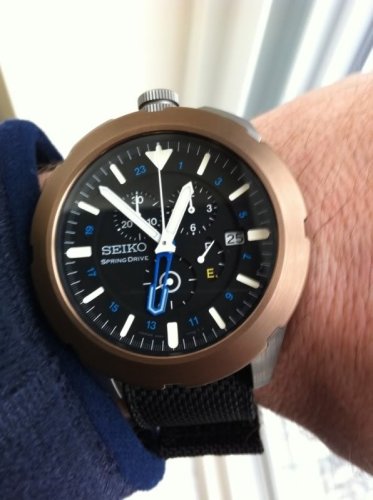 Added this to collection today. Took off the band that came with it and am trying it on a Zulu for a bit. Great quality, but the band is the only part that is less than its Grand Seiko cousins IMHO. Otherwise it is a great piece. Great AD replaced original piece in 3 days as for some reason the beze