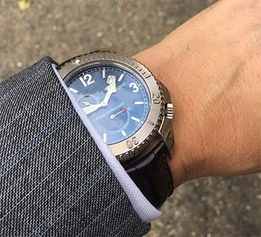 You also have the 36/37mm old VC Overseas model. Oohh: it is awesome, I think. But I cannot get it to work on my own, thin wrist. I’ve owned three of the VCO blues, always sell them again... 855: But hey, the design is still the very best, so balanced - also in size. Sam.