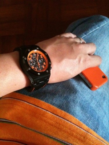 if you like it, then just go for it. personally, i find the black/orange to be a nice "fierce and loud" combination. look around you, quite a number of the signboards (eg road sign, "danger" sign, "attention" sign) are in orange, and these colour combinations have been around for a long time, will c