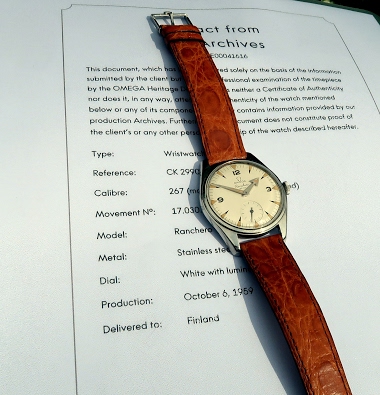 Was afraid I was a Hoarder with this number four white dial Ranchero's, but other's collectors have told me not to worried This last one I have just recieved an extract for (have extract for all four) A nice Omega Ranchero ref. 2990-1, cal. 267 delivered to Finland October 6 in 1959