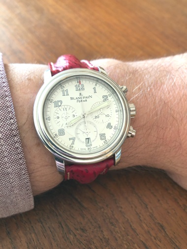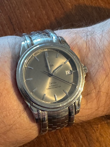 After the Limited Editions. They came in steel and red gold on leather or this bracelet. There were three versions, time and date, as seen here, a GMT and a power reserve. The former measuring 37.5mm, the latter two 38.7mm. This first Co-Axial movement was still based on the ETA 2892-A2, later Co-Ax