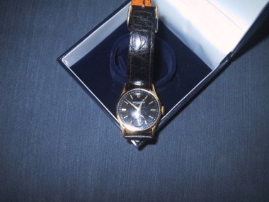 I bought this watch some years ago and was told it was a 1945 Calatrava. Everything seems right, down to the 12-120 movement markings including the mini wheat sheaf like mark that I cannot work out (?initials/?a logo) and which appears twice; one imprinted in gold and the other in steel. My magnifyi