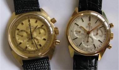 Used to own a couple nice looking 60's pieces - caliber 321 on the left, caliber 861 on the right: ....but they didn't fit well under a shirt cuff and they didn't seem to work in a casual setting so I sold them. Now I have this Chronostop and wear it frequently on days off:
