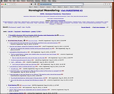 I view Horological Meandering on my Mac in what I consider 'original format' (see below). I have given up with the other forums since I can no longer see them in this format - on the PC they appear garbled. When/if the HM format goes that way too I shall probably give up the site. Is there a way of