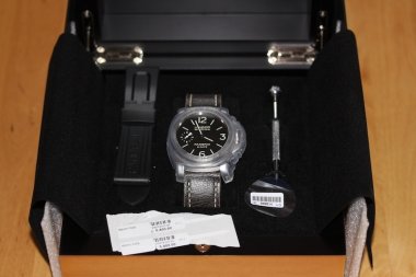 For sale Panerai 510 (44mm in house movement) in UK I picked this up, changed the strap, wore in once and then decided it was too small for me The strap and buckle is unworn, the watch has been worn for a day and is unmarked comes with two straps the leather and the rubber All papers, boxes hang tag