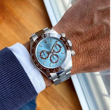 Just picked this one up, and it surpassed all my expectations !! It is heavy since the entire watch and bracelet is made from platinum, but once the watch is sized on the wrist, it is fully balanced and the weight is gone. The ice blue dial is just a masterpiece, changes colors depending on the ligh