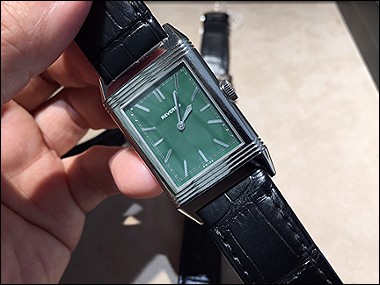 I'm in London this week and I had the amazing fortune of visiting the JLC London boutique and being able to see the prototype of the Reverso ultra-thin for London. It's SS and based on the other editions with the major differences being the colour of the dial and the engraving on the back. The green