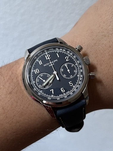This is my first manual chrono Patek and it’s great! Some observations: - Wears very well and does not feel large as (for me ~6.75ish wrist) with its thin case profile and shape. - So comfortable I forget it’s on the wrist Had an 1815 BE before and I remember it felt noticeably taller/thicker (might