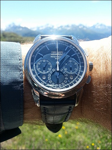 Dear Henry, congratulations on a great watch, enjoy in good health! I echo Mark's comments on shades. Attached is mesmerizing blue reflection of the sky while in Swiss Alps. White gold hands also incredibly appeared blue. No Photoshop here, real image from the phone camera! Club Blue sky at the watc
