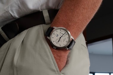 This german watch is very "utilitarian", nothing more, nothing less than what is strictly necessay (except maybe the "poire" blue hands). I wanted a white watch for my casual white shirts, with strong presence on the wrist, without bling. Some Panerai were fitting, or the Glashütte Senator Observer.